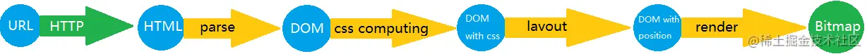 上图简单的展示了从我们输入一个url到浏览器呈现给我们一个漂亮的页面的整个过程,下面我们来一步一步进行解析: