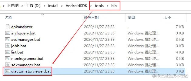 Windows 系统,uiautomatorviewer.bat 文件所在路径