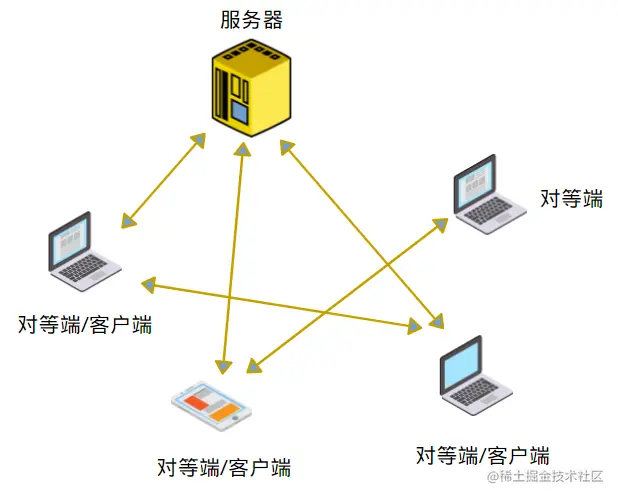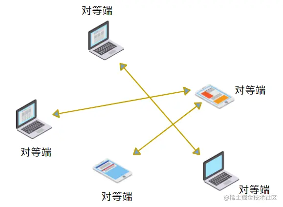 P2P 是 Peer-To-Peer 的简称,意思是“对等网络”或者“点对点网络”。在网络中的每个端即是客户端,又是服务器。