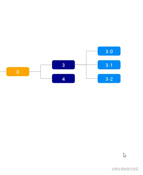 为了让结点在父节点处出现,我们首先记下父节点的位置,然后在动画前先将结点移动到这个位置。由于这个步骤没有动画,所以看起来就像是结点就从那里出现的。