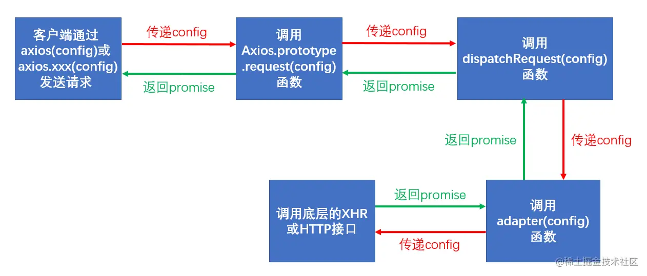 axios 是基于Promise的, axios() 函数的返回值就是一个Promise类型的对象,所以可以直接在 axios() 函数后跟上 then() 函数来处理请求结果。