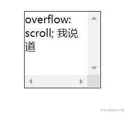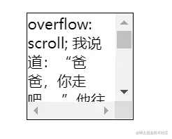 overflow: scroll; 内容会被修剪,浏览器会显示滚动条以便查看其余内容,无论内容是否超出,均会显示滚动条