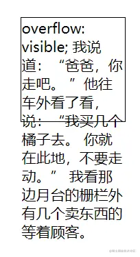 overflow: visible; 默认值。内容不会被修剪,会呈现在元素框之外
