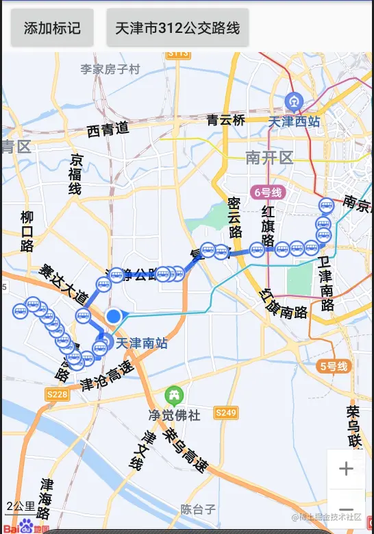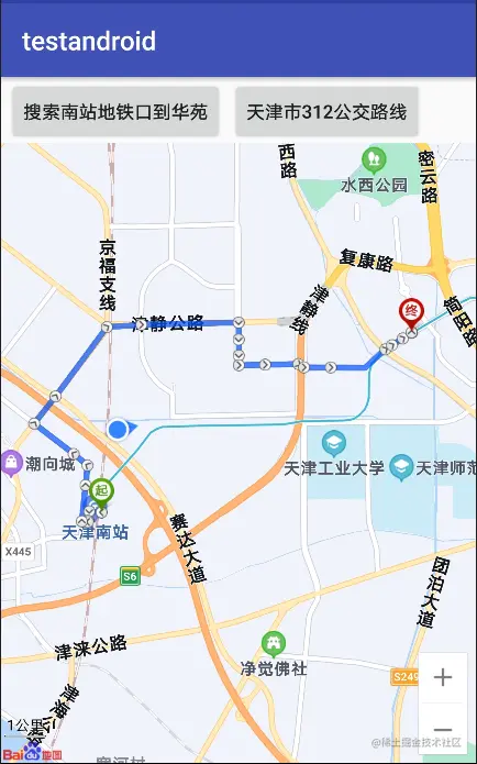 好了,步入正题。上一篇推文主要介绍了在地图上面检索数据,进行POI操作,可以查找某个店铺,查询公交路线的走向。下面这篇推文主要介绍下我们利用百度地图如何实现导航功能,比如准备去天津西站,从天津南站如何过去,路线是什么,如何显示在界面中。