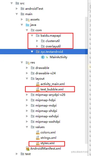 com:将其拷贝到main/java目录下,这里可能会出现错误,主要是在IconGenerator类和DefaultClusterRenderer类中的R错误,需要将其R路径换成当前包的R即可。