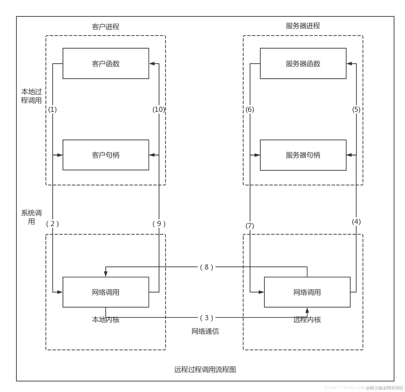 RPC采用客户机/服务器模式。请求程序就是一个客户机,而服务提供程序就是一个服务器。首先,客户机调用进程发送一个有进程参数的调用信息到服务进程,然后等待应答信息。在服务器端,进程保持睡眠状态直到调用信息到达为止。当一个调用信息到达,服务器获得进程参数,计算结果,发送答复信息,然后等待下一个调用信息,最后,客户端调用进程接收答复信息,获得进程结果,然后调用执行继续进行。