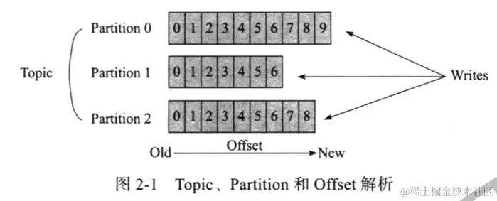 4)Offset:消息在 Topic 的 Partition 中的位置。同一个 Partition 中的消息随着消息的写入,其对应的 Offset 也自增