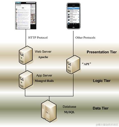 访问twitter的用户除了网页(web通道),还有手机(API通道),而后者的比例占总流量的80%-90%。