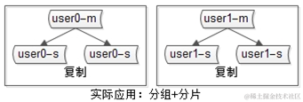4)分片+分组,这是大数据量下,mysql架构的实际情况