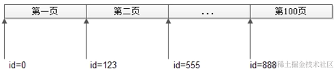 c)第二页,带上id>123查询:WHERE id>123 LIMIT 100