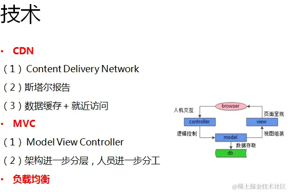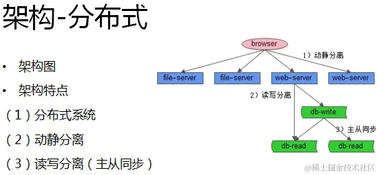 (2)流量变大,可以使用动静分离、读写分离、主从同步、垂直拆分、CDN、MVC等方式不断提升网站的性能和研发效率;