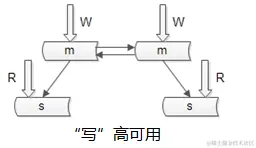 上面这个图是很多互联网公司mysql的架构,写仍然是单点,不能保证写高可用。