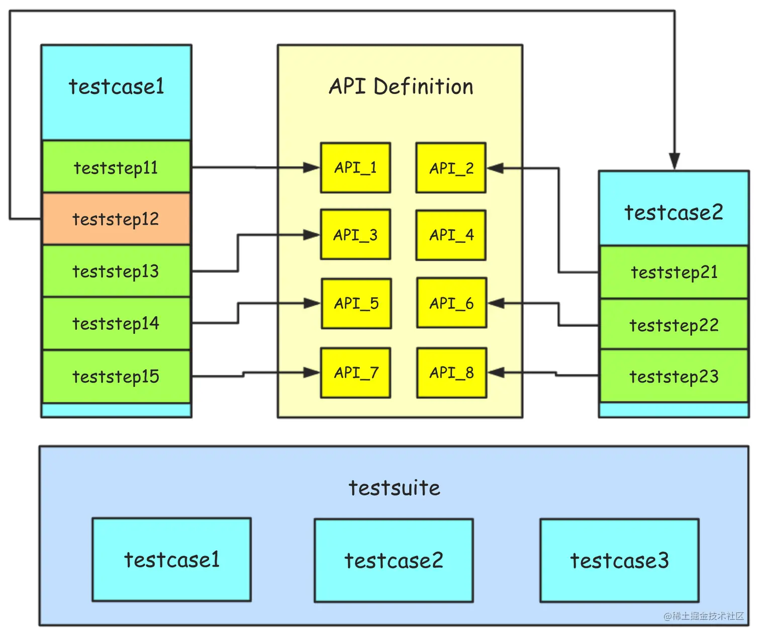 概括来说,测试用例分层机制的核心是将接口定义、测试步骤、测试用例、测试场景进行分离,单独进行描述和维护,从而尽可能地减少自动化测试用例的维护成本。