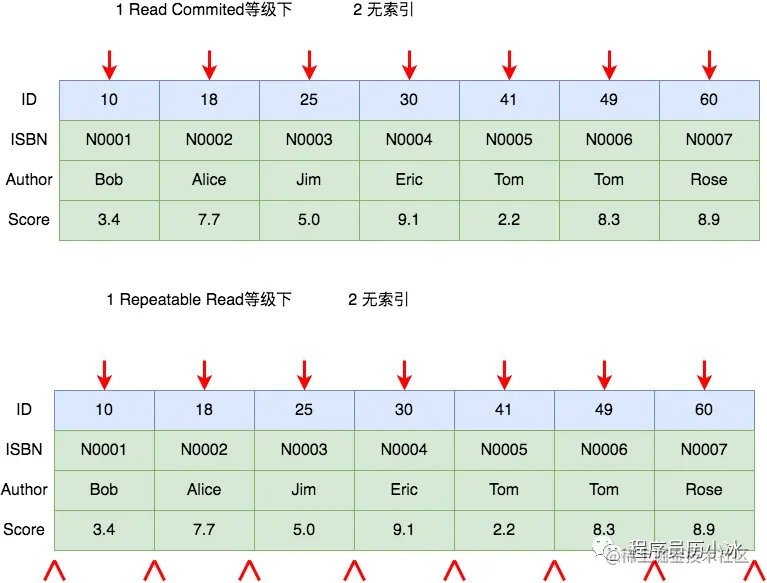 如果开启innodb_locks_unsafe_for_binlog,则和RC一样,场景1会锁等待,场景2不会锁等待。