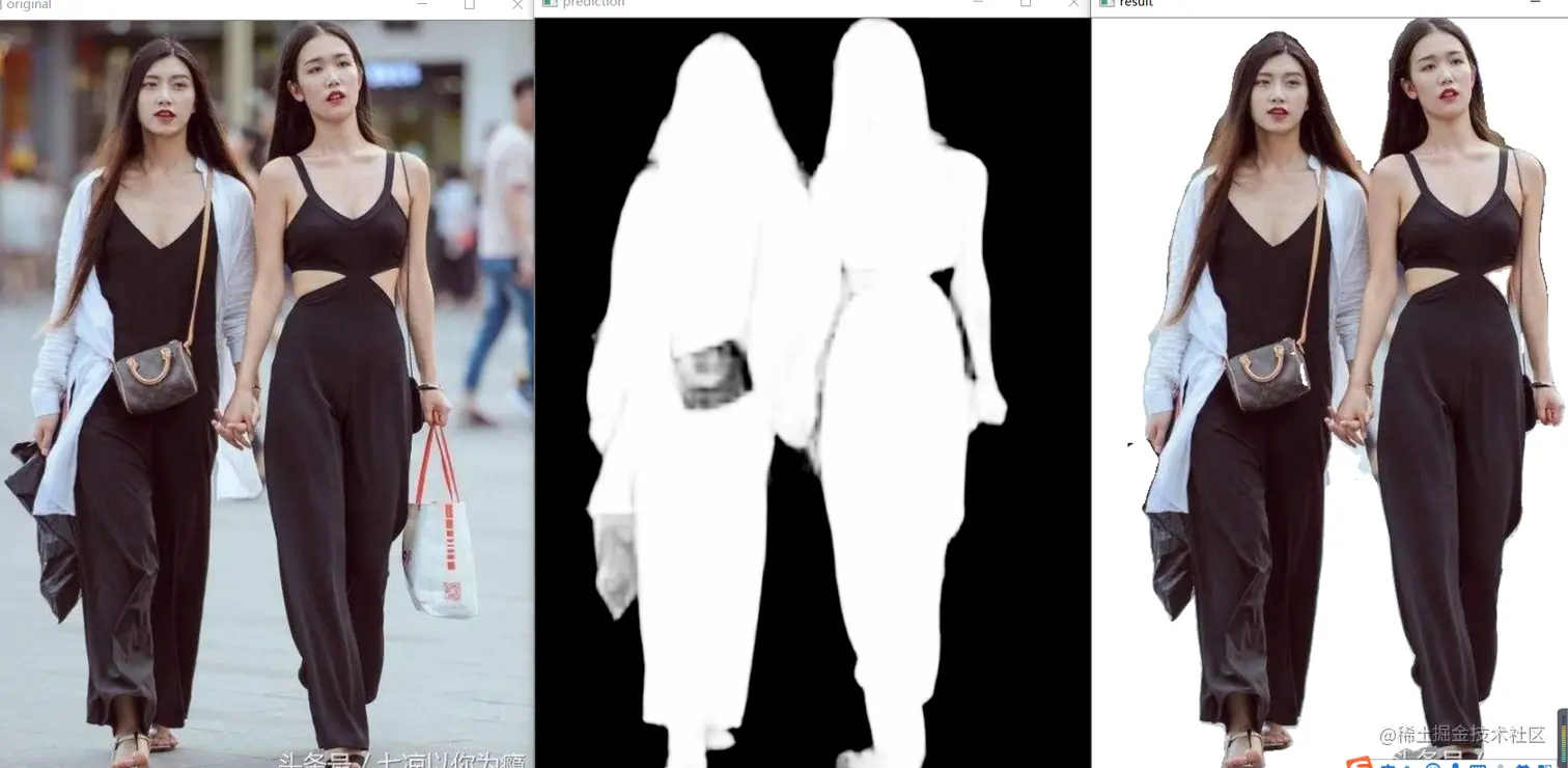 prediction= prediction.astype(np.uint8)#抠图结果转化格式,转为图片格式 得到是黑白图,其中人为白色,背景为黑色,