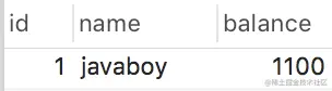 4.再次回到 B 窗口,执行 B 窗口的第二条 SQL 查看 javaboy 的账户,结果如下: