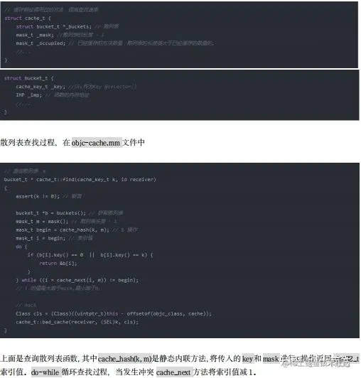 cache_t增量扩展的哈希表结构。哈希表内部存储的bucket_t。