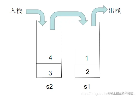 当s1为空时,如果s2不为空,则将s2中的内容出栈,再入栈到s1;