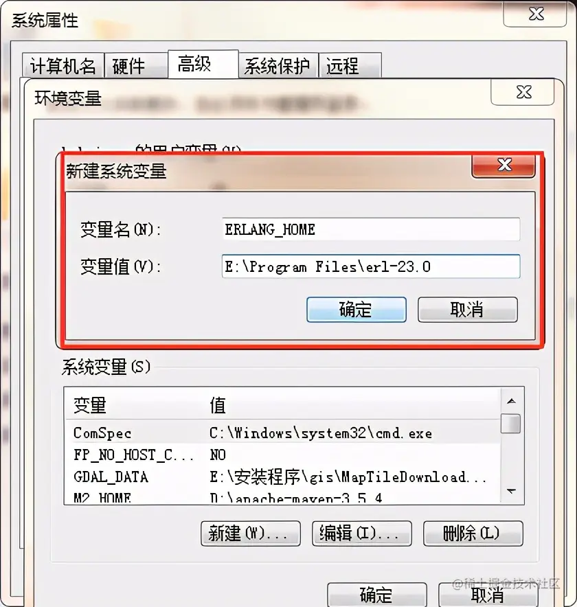 新建ERLANG_HOME环境变量