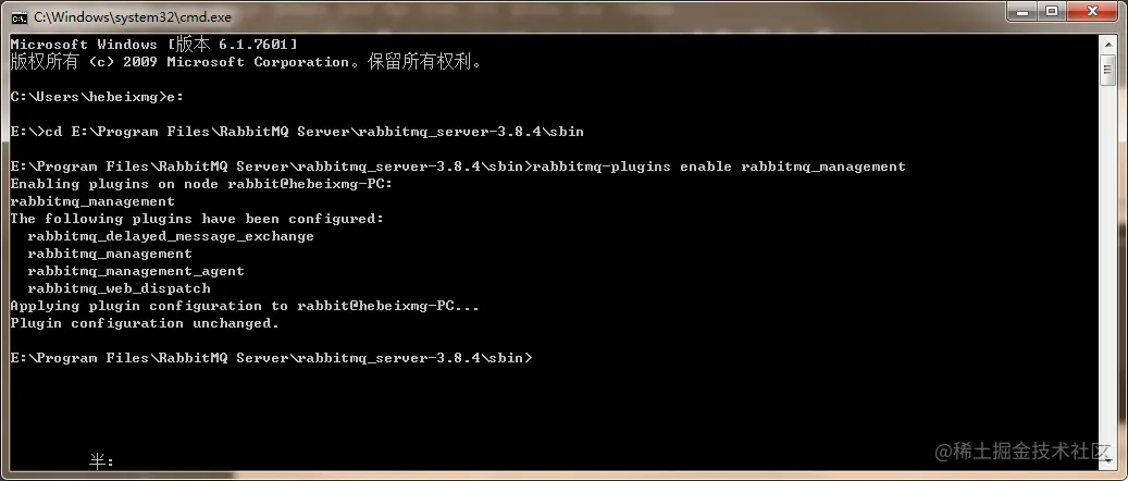 输入 rabbitmq-plugins enable rabbitmq_management