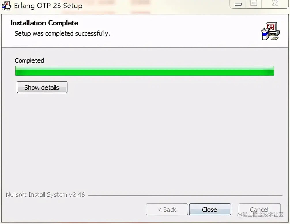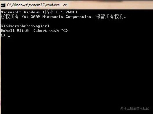 打开cmd窗口,输入erl,看到版本号就说明erlang安装成功了。