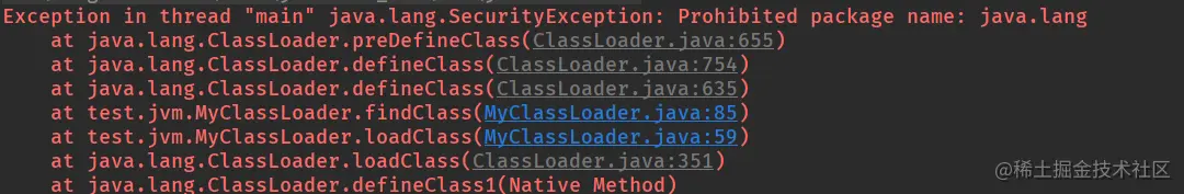 哦吼,看来不行,因为我们继承了 ClassLoader,ClassLoader 会限制我们去加载 java.lang 包下的类,啊这,看来想要破坏 Java 的核心类还是任重而道远啊。