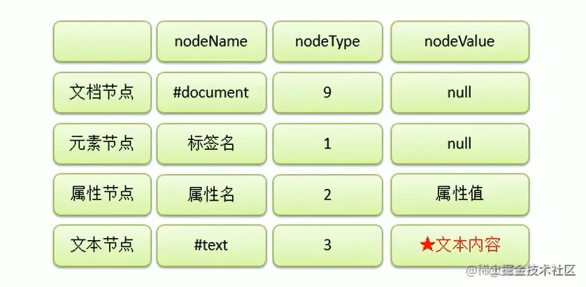 节点的类型不同,属性和方法也都不仅相同