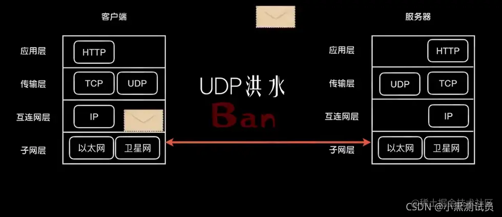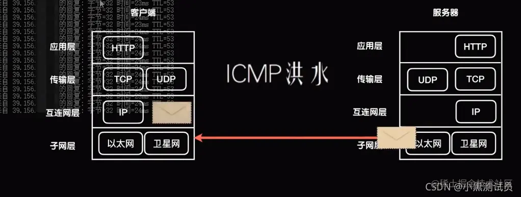 为什么讲DDos前要先了解网络协议呢?因为DDos可以发生上网络通讯的每一层中,在网络上只要遵从协议的格式编写数据包并将数据包发送出去,那这个数据包就会被送往目标地址。Dos攻击最简单的就是往同一个目的地发送大量的数据包沾满其带宽资源导致其网络卡顿等。数据包可以是HTTP、TCP、UDP、ICMP、IP等协议数据包。