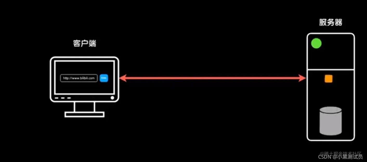 客户端通过网络线路向远程服务器发送一个网络请求,服务器接收后对信息进行处理,处理完毕后将处理结果数据通过网络线路返回给客户端。