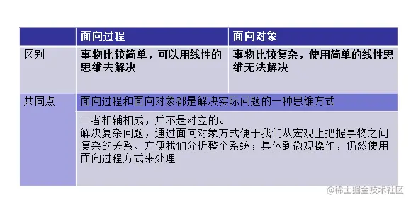 编程思路不同: 面向过程以实现功能的函数开发为主,而面向对象要首先抽象出类、属性及其方法,然后通过实例化类、执行方法来完成功能。