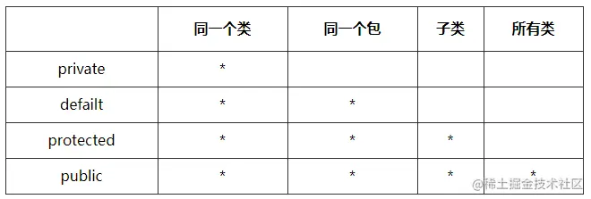 default 默认的被这个类本身访问;被同一个包中的类访问。(包可见性)