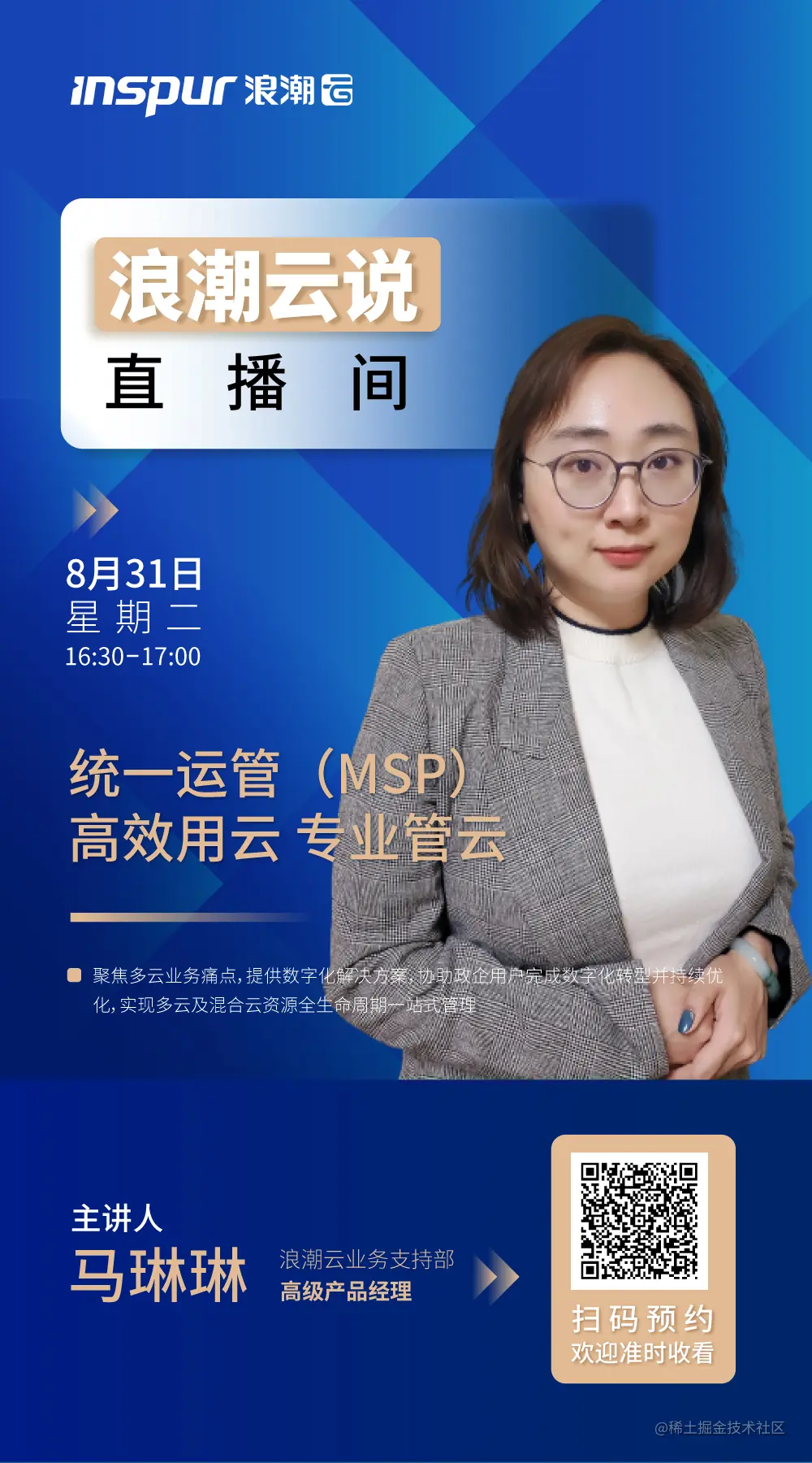 【浪潮云说】直播间第七期今日准时开播! 已注销 2021-08-31 86 阅读1分钟 统一云管(MSP)高效用云 专业管云 聚焦多云业务痛点,提供数字化解决方案,协助政企用户完成数字化转型并持续优化,实现多云及混合云资源全生命周期一站式管理。