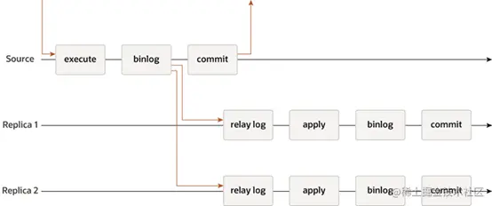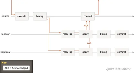 传统MySQL复制默认提供了一种简单的主从复制方法,这种架构有一个主,以及一个或者多个从,当主节点执行提交事务,然后异步的方式发送到其他从节点,从库重新执行relay log日志内容达到主副本一致的目的,在默认情况下集群所有节点数据都是一致的。