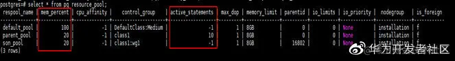 alter resource pool son_pool with(active_statements=-1);