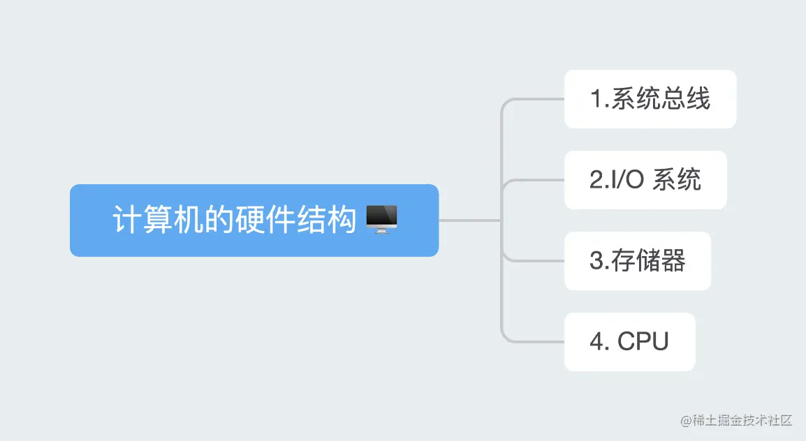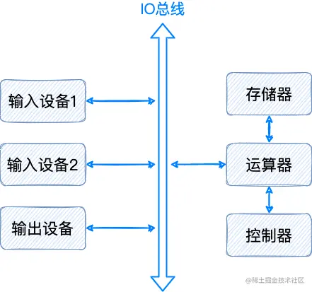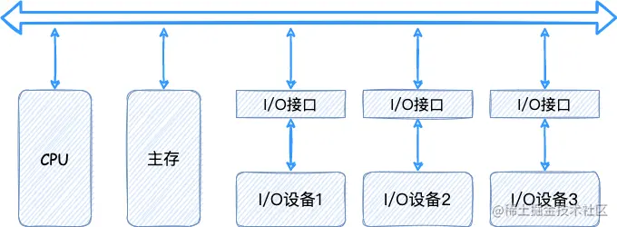 比如输入、输出设备通过总线连接 CPU。