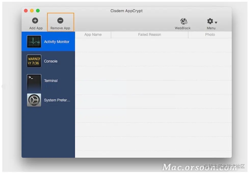 如果要解锁应用程序,只需选择目标应用程序,然后单击“删除应用程序”