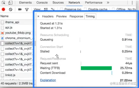 03-21 webview 性能分析 Leo_Fighting 2021-08-31 230 阅读1分钟 主要是使用 Chrome 浏览器 F12 中的网络对接口的响应时间进行判断 其中: Queuein:队列等待时间 Stalled:在队列中,停止请求 Waiting:服务器响应时间 Content Download:下载时间
