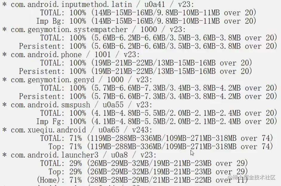 adb shell dumpsys meminfo 应用包名