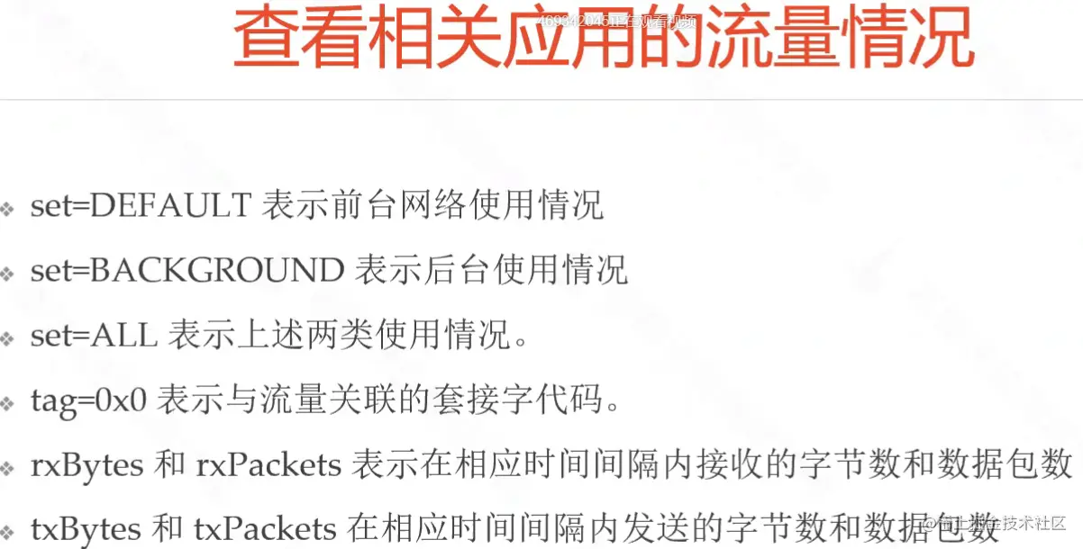 03-26 网络流量分析 Leo_Fighting 2021-08-31 104 阅读1分钟 显示网络流量(建议使用真机): adb shell dumpsys netstats 对指定应用进行流量分析 adb shell dumpsys package 包名 | grep userId 获得 userId 后: adb shell dumpsys netstats | grep userId