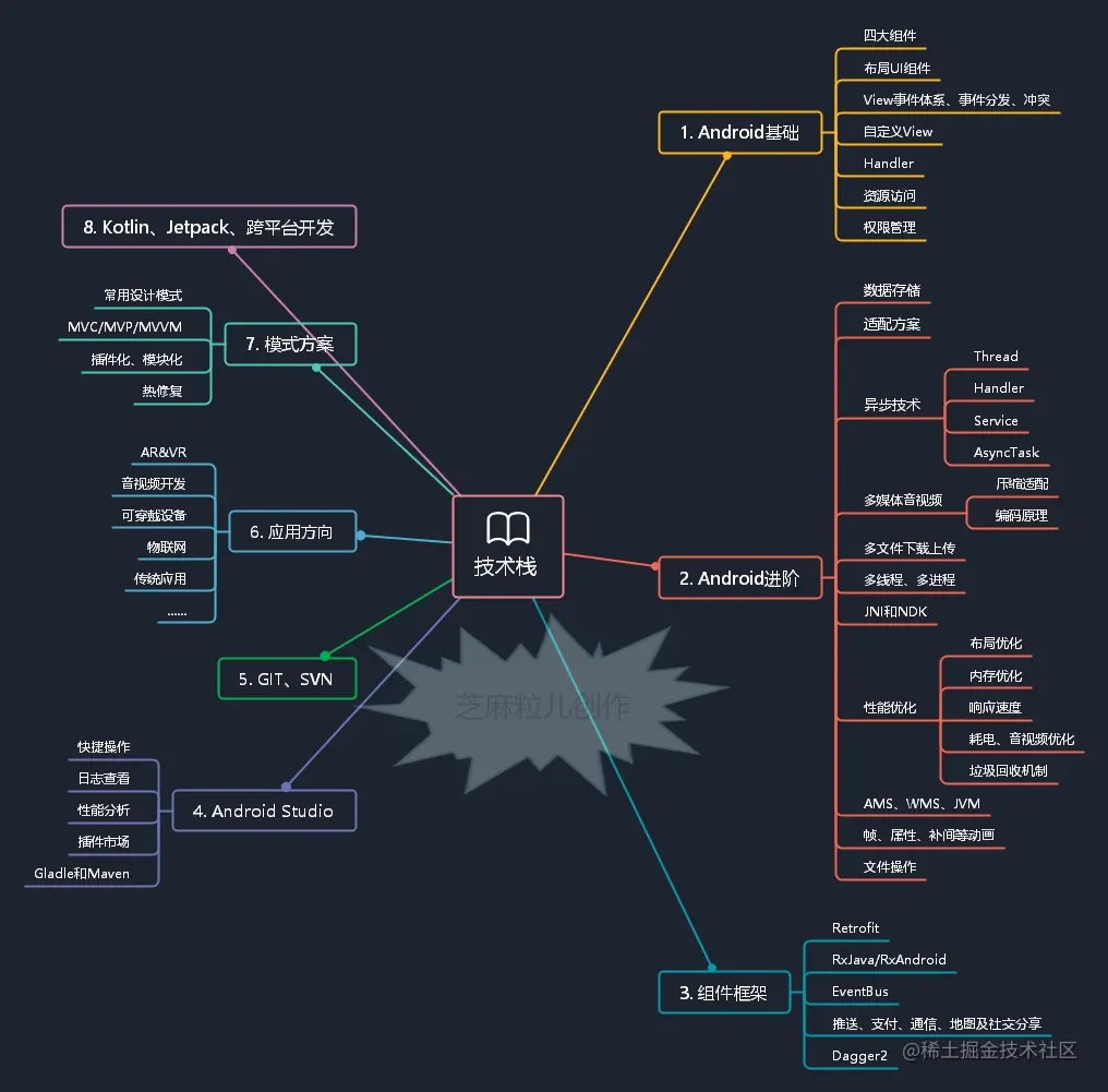 所以小空做了Android技术栈列表,在这我们不讨论基础知识,只单单论Android的技术栈。目的一是给初学者和复习者提供参考方向,目的二则是希望能和更多的业内人交流。