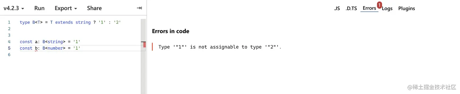 当T为string类型时值为‘1’,否则为'2',为number类型则报错