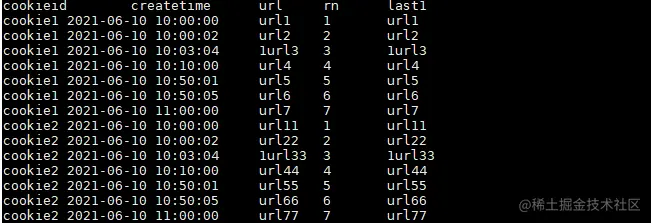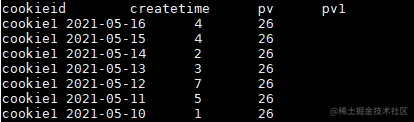 还是用上述的用户登录日志表:user_pv,里面的数据换成如下所示: