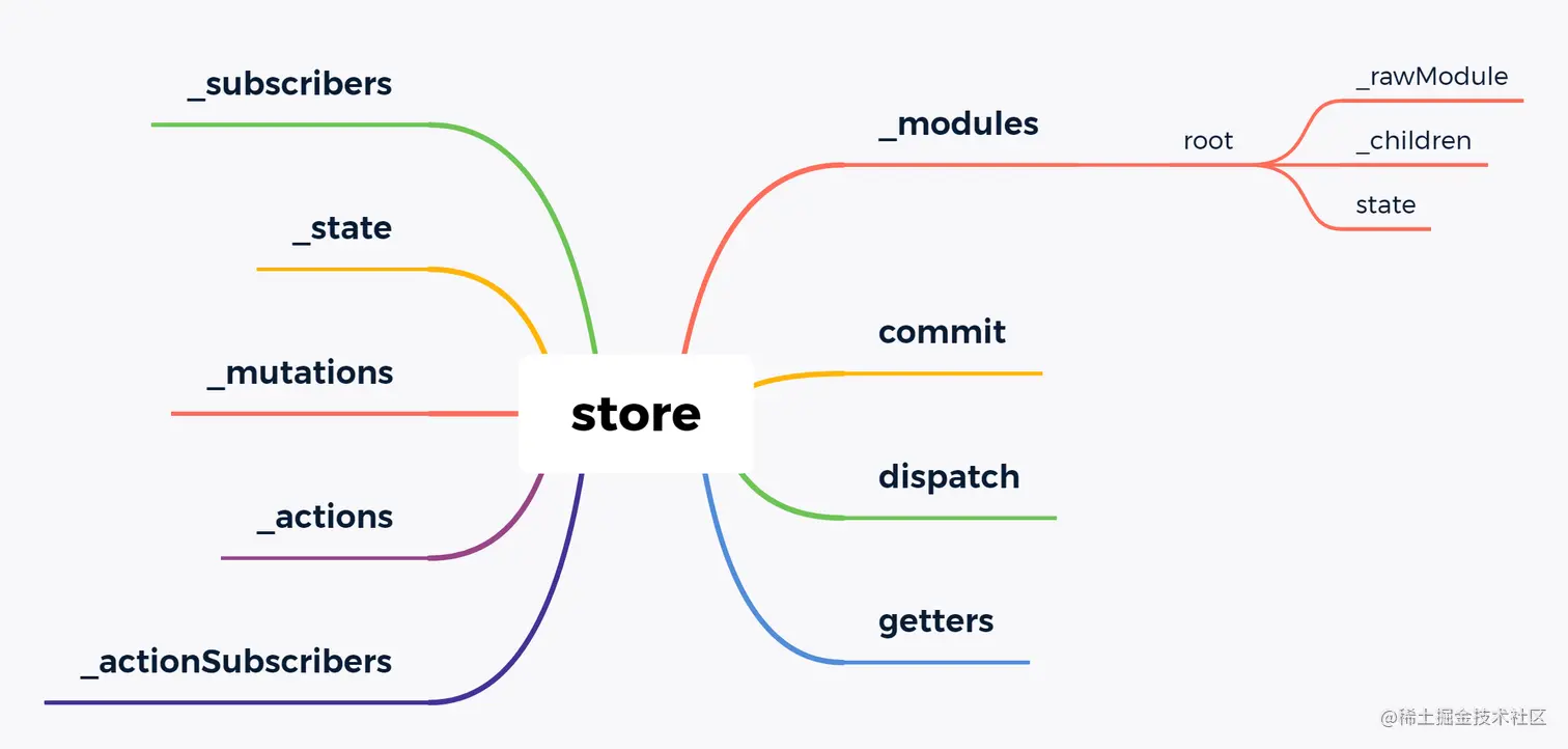 看到这你可能会有点迷惑,怎么实例上的是_state而不是state呢?其实还有store中还有一个 getter 取 state 的值