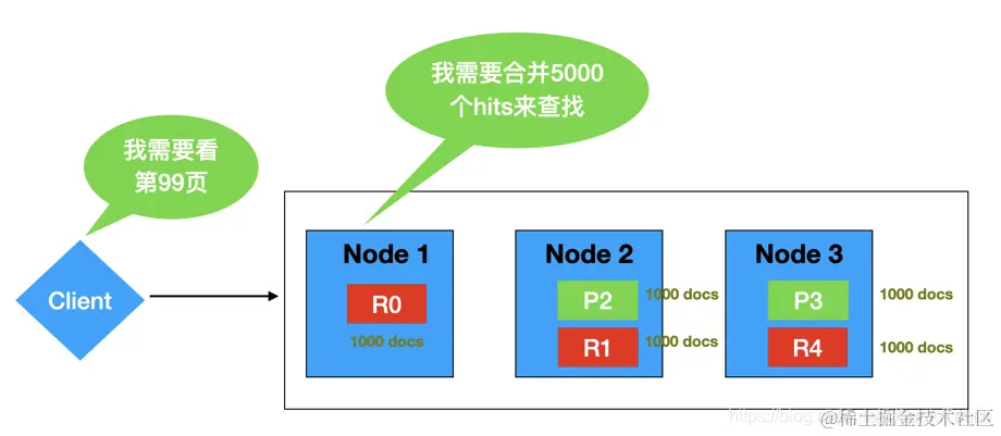 避免使用 from 和 size 来分页太深或一次请求太多结果。 搜索请求通常跨越多个分片。 每个分片必须将其请求的命中和任何先前页面的命中加载到内存中。 对于深页面或大型结果集,这些操作会显着增加内存和 CPU 使用率,从而导致性能下降或节点故障。这里的原因是 index.max_result_window 的默认值是 10K,也就是说 from+size 的最大值是1万。搜索请求占用堆内存和时间与 from+size 成比例,这限制了内存。假如你想 hit 从 990 到 1000,那么每个 shard 至少需要 1000 个文档: