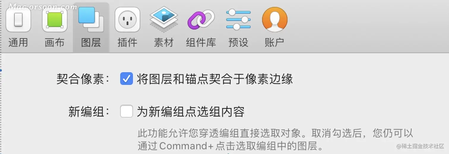 在Sketch--首选项--图层中,将契合像素勾选上,再次上传就可以正常显示切图尺寸了哦。