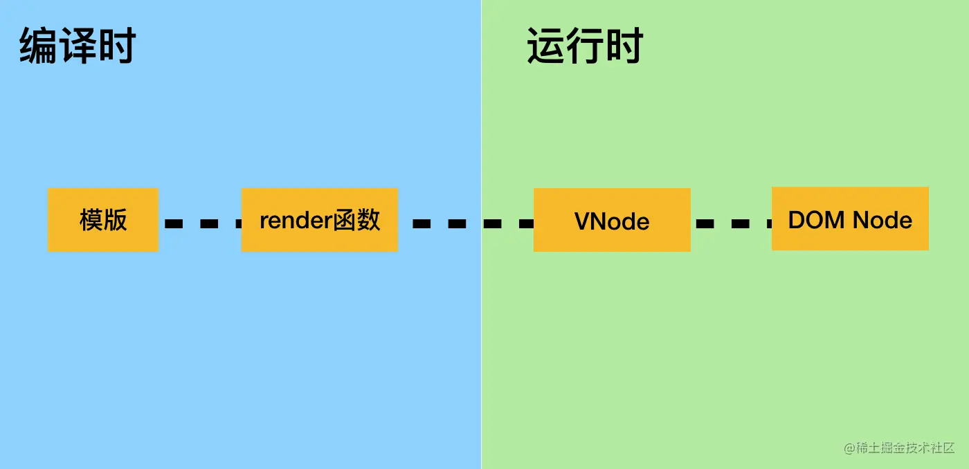 这之间对这段节点的描述会经历4次变化,横跨编译时与运行时: