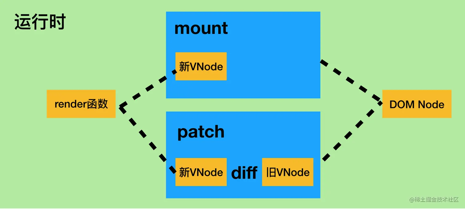 VUE的首次渲染对应mount模块,更新对应patch模块。