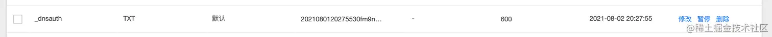 添加了之后,腾讯云就会查看这条 TXT 记录值是否正确,从而验证域名是否合法。