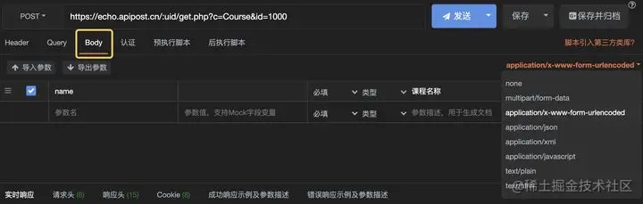 1)当你需要提交表单时,切换到 x-www-form-urlencoded\