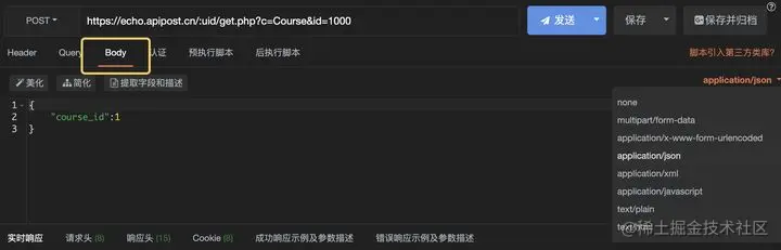 3)当您需要发送JSON对象或者其他对象时,切换到对应的raw类型即可\